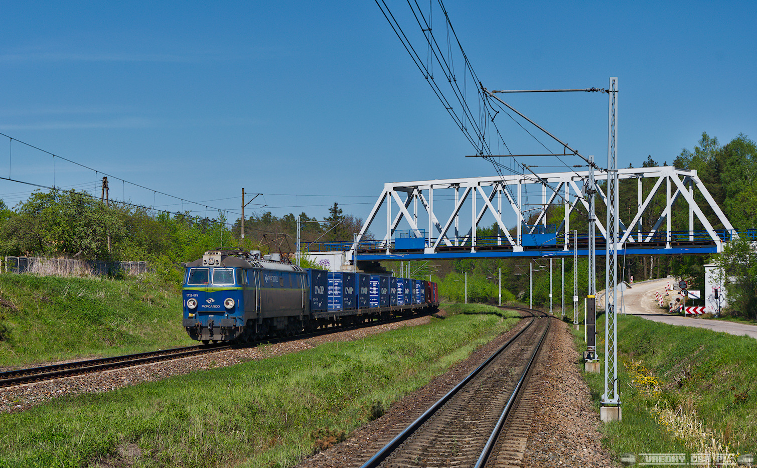 Pociąg spółki PKP Cargo mija Chruszczobród kierując się na Dąbrowę Górniczą Ząbkowice. Skład prowadzi ET22-063, rocznik 1973. Ciekawe, czy wtedy po sieci PKP jeździły już jakieś pociągi kontenerowe?