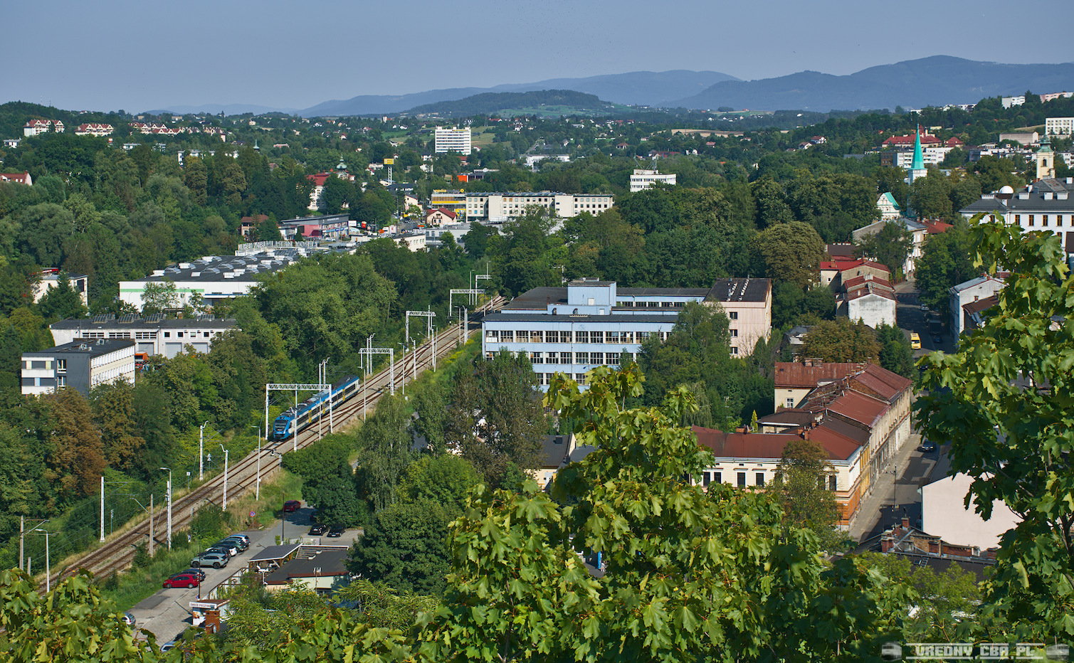 13.08.2025r. Pociąg linii S61 KŚ 94533 z Czechowic-Dziedzic przez Zebrzydowice kończy bieg w Cieszynie. Kadr zamyka Pasmo Klicznoka i Szyndzielni. Ten pierwszy jest doskonale widoczny niemal w centrum kadru, ta druga niestety w kadrze się nie zmieściła. Gdybym zastosował ogniskową o parę milimetrów mniejszą i widoczna byłaby przy prawej krawędzi.